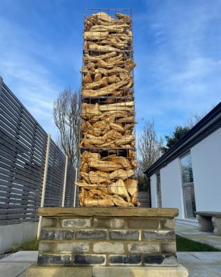Golden driftwood in a gabion tower by Rebecca Kelly
